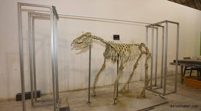 Çalışmalarda bulunan üç toynaklı atın iskeleti, bilim insanları tarafından ayağa kaldırıldı.Kazı ekibinden uzman antropolog Ömer Dağ, çalışmalarda bulunan fosiller hakkında bilgi verdi.Kayseri'nin fosil alanında çok büyük zenginliklere sahip olduğunu belirten Dağ, Yamula Barajı ve Barsama bölgelerinde bulunan "Hipperion" isimli at grubuna ait 7,5 milyon yıllık fosillerin günümüz atlarının ataları olduğunu ifade etti.Fosilleri Büyükşehir Belediyesi Bilim Merkezi laboratuvarlarında temizlediklerini anlatan Dağ, şunları kaydetti:"Kazı çalışmalarımız 2018 yılında başladı. Yaz sezonu boyunca iklim elverişli olduğu müddetçe kazı çalışmalarımıza devam ediyoruz. Yazın kazı çalışmalarımız, kışın da laboratuvar çalışmalarımız devam ediyor. Bilim Merkezindeki laboratuvarda konservasyon ve temizleme işlemlerini yapıyoruz. Genel olarak baktığımızda bizim faunada 'Hipperion' isimli ad grubumuzda üç toynaklı atlarımız, gergedanımız, zürafamız var. Fil grubuna ait örneklerimiz var. Günümüzde at tek toynaklıdır. 2 ve 4'üncü parmağı körelmiştir. Tamamen iklim adaptasyonundan dolayı ama bizim o dönemde yaşamış atımız üç toynağa sahip. Günümüz atlarına göre daha kısa."