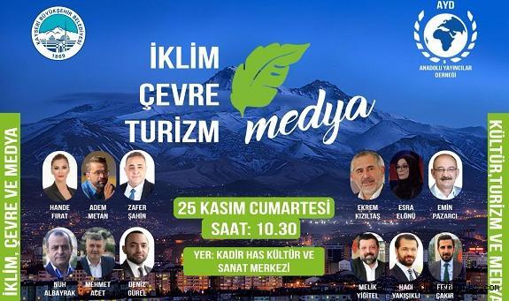 Büyükşehir Belediyesi ve Anadolu Yayıncılar Derneği (AYD) destekleri ile 25 Kasım Cumartesi günü saat 10.30’da Kadir Has Kültür ve Sanat Merkezi’nde gerçekleşecek konferansta birbirinden ünlü gazeteci yazarlar konuk olacak. Çevre, Şehircilik ve İklim Değişikliği Bakanı Mehmet Özhaseki’nin de konferansta bakanlık çalışmalarıyla ilgili değerlendirmelerde bulunması bekleniyor.Gazeteci yazarlardan Hande Fırat, Adem Metan, Zafer Şahin, Nuh Albayrak, Mehmet Acet ve Deniz Gürel’in iklim ve çevre konularını medya bağlamında ele alacağı konferansta, Ekrem Kızıltaş, Esra Elönü, Emin Pazarcı, Melik Yiğitel, Hacı Yakışıklı ve Fevzi Çakır da kültür ve turizm konularını medya bağlamında ve Kayseri doğrultusunda masaya yatıracak.