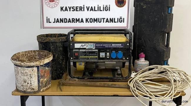 Kayseri İl Jandarma Komutanlığınca Develi ilçesi Bakırdağ Jandarma Karakol Komutanlığı sorumluluk sahasında bulunan Hamzaların Ağılı Mevkiinde icra edilen operasyonda, define bulmak amacı ile izinsiz kazı yapıldığı tespit edildi.