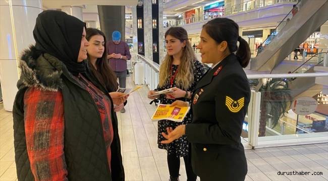 Kayseri'de jandarma ekipleri, 25 Kasım Kadına Yönelik Şiddetle Mücadele Günü kapsamında vatandaşları bilgilendirdi.