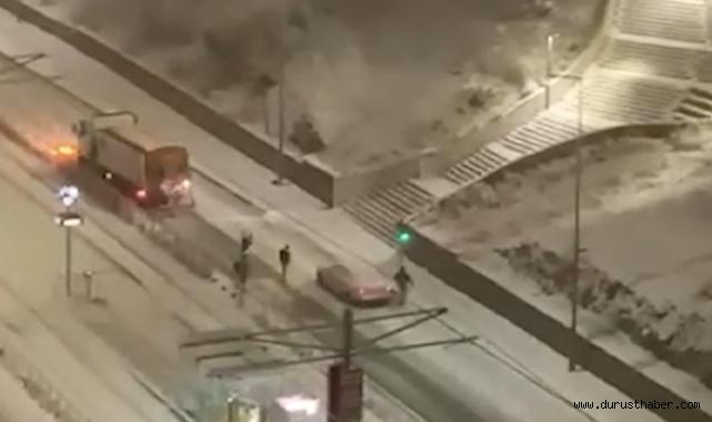 Kazanın yaşandığı anlar, çevrede bulunan bir vatandaş tarafından cep telefonu kamerasına kaydedildi. Görüntülerde, çocukların neşeyle kar topu attığı ve ardından koşarak uzaklaştıkları görülüyor.