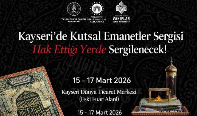 Kayseri’de, kutsal emanetler ve vakıf kültürüne ait eserlerin yer aldığı “Kutsal Emanetler ve Vakıf Eserleri Sergisi” 99 nadide eseriyle ziyaretçilerini bekliyor. Başlangıçta Flamingo Düğün Salonu’nda düzenlenmesi planlanan etkinlik, böylesine değerli eserler için uygun bulunmayınca iptal edildi ve serginin doğru adresi olarak Kayseri Dünya Ticaret Merkezi (Eski Fuar Alanı) belirlendi.