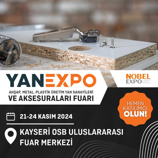 Mobilya üreticilerinin merakla beklediği YANEXPO Ahşap, Metal, Plastik Üretim Yan Sanayileri ve Aksesuarları Fuarı, 21-24 Kasım 2024 tarihlerinde Kayseri OSB Uluslararası Fuar Merkezi'nde gerçekleşecek. Bu önemli etkinlik, mobilya üretiminde kullanılan A’dan Z’ye tüm yan sanayi ürünlerini bir araya getirerek, sektördeki lider üreticilere ürünlerini tanıtma ve ticaretlerini artırma fırsatı sunuyor.YANEXPO 2024: Sektörün Kalbi Kayseri'de AtacakTürkiye'nin dört bir yanından katılım beklenen YANEXPO 2024, ahşap, metal ve plastik üretim yan sanayileri ile aksesuarlarının sergileneceği önemli bir ticaret platformu olacak. Bu fuar, katılımcılarına yeni iş bağlantıları kurma, sektördeki yenilikleri takip etme ve en son teknolojileri deneyimleme fırsatı sunacak.
