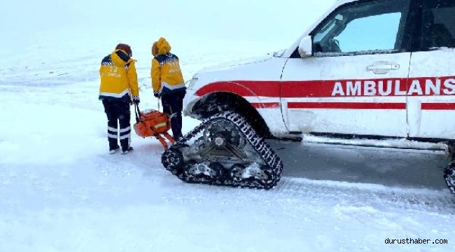 KAYSERİ'de 112 acil sağlık ekipleri, kar yağışı nedeniyle ulaşım sağlanamayan bölgelere paletli kar ambulansı ile ulaşarak, hastalara müdahale ediyor.