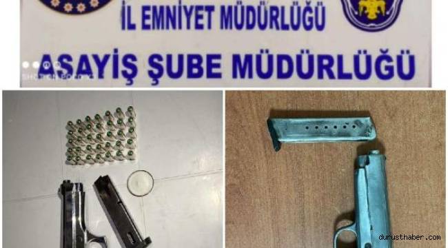 İl Emniyet Müdürlüğü Asayiş Şube Müdürlüğü Yankesicilik ve Dolandırıcılık Büro Amirliğine bağlı 'Güven Timi' ekipleri, Hunat Mahallesi, Cumhuriyet Meydanı, Kazancılar Çarşısı ve Millet Caddesinde kimlik kontrol uygulaması yaptı. Şüphe üzerine durdurulan iki kişinin yapılan üst aramasında ruhsatsız 2 adet tabanca ve bu tabancalara ait 36 mermi ele geçirildi. Şüpheliler gözaltına alındı. Olayla ilgili inceleme başlatıldı. (DHA)