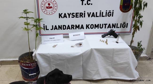 Yahyalı İlçe Jandarma Komutanlığı ekipleri, ihbar üzerine Senirköy Mahallesi'nde ikamet eden Ç.T'nin evinde arama yaptı.Evde 2 uyuşturucu madde kullanma aparatı, 2 gram kenevir tohumu, bahçede ise iki ayrı saksı içerisinde 4 kök kenevir bitkisi ele geçirildi.Gözaltına alınan şüphelinin jandarmadaki işlemleri sürüyor.