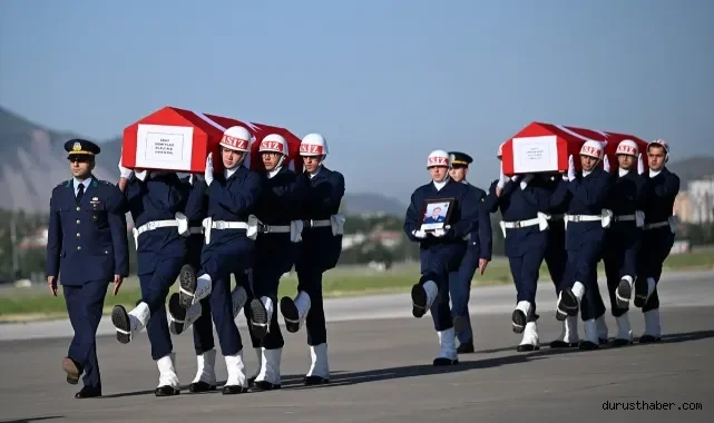 Kayseri'de kaza kırıma uğrayan eğitim uçağında şehit olan hava pilot albaylar Uğur Yıldız ve Gökhan Özen'in naaşları düzenlenen törenin ardından memleketlerine uğurlandı.