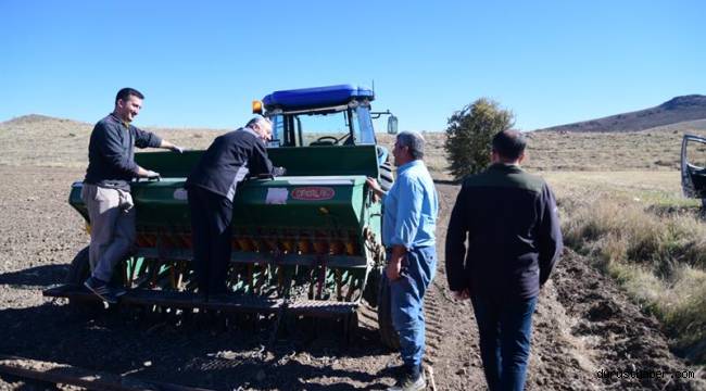 Kayseri'de, Tarım Arazilerinin Kullanımının Etkinleştirilmesi Projesi kapsamında dağıtılan sertifikalı buğday ve arpa tohumlarının ekimine başlandı.