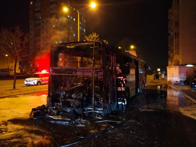 Kayseri’de Melikgazi ilçesi Caferbey Mahallesi’nde seyir halindeyken henüz bilinmeyen bir nedenle alev alan özel halk otobüsü kullanılamaz hale geldi.