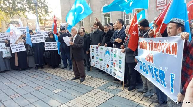 Dernek başkanı Ahmet Taş, burada yaptığı açıklamada, 100 yıla yakın zamandır Çin yönetiminin Uygurlara zulmettiğini söyledi.