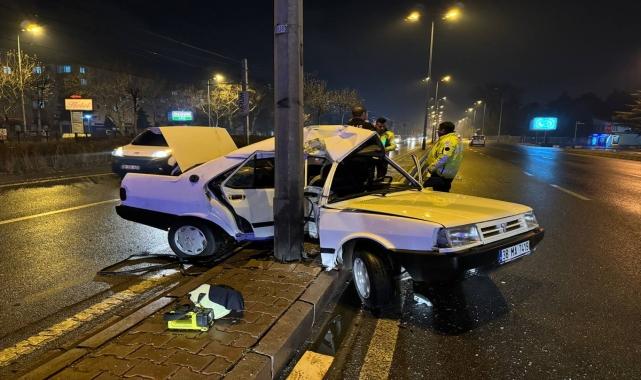 M.A'nın kullandığı 38 MA 7419 plakalı otomobil, Osman Kavuncu Bulvarı'nda refüjdeki aydınlatma direğine çarptı.