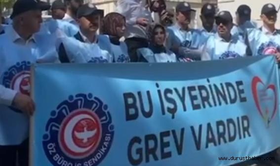 Ardından işçiler, kurumun binasına ‘Bu işyerinde grev vardır’ yazılı pankart astı.