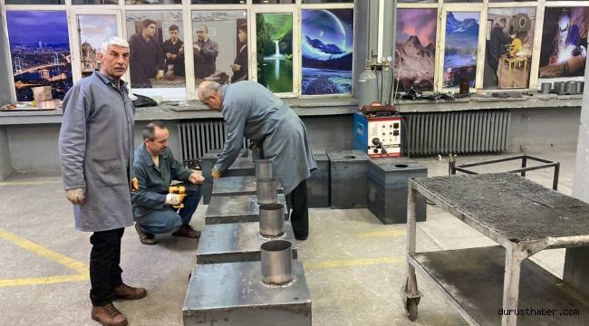 Seyyid Burhaneddin Mesleki Teknik ve Anadolu Lisesi’nde ise, afetzedelerin ısınma ihtiyacının karşılanması için soba üretimine başladı. İç ve dış mekanda kullanılacak şekilde iki tür üretilecek sobalar en kısa sürede bölgeye gönderilecek. Şimdiye kadar 70 adet iç mekan sobası ürettiklerini söyleyen Seyyid Burhaneddin Mesleki Teknik ve Anadolu Lisesi Metal Teknolojileri Alan Şefi Nihat Ersoy, “Deprem biliyorsunuz Kayseri’de de ciddi şekilde hissedildi. Bizler korkuyla evlerimizi terk edip farklı yerlerde kalmaya başladık. Depremden 2 gün sonra da okul müdürümüz aradı, deprem bölgesine yardım maksatlı birtakım şeyler gönderilmesi gerektiğini söyledi. Bakanlığın emriyle, İl Milli Eğitim Müdürlüğü organizesiyle de bizim o bölgeye bir destekte bulunmamız istendi. Bizler de harekete geçtik. Mekan içi ve mekan dışı olmak üzere 2 çeşit soba istendi. Birisi varil diğeri ise çadır içinde kullanılacak şekilde. Çadır içi kullanılacak sobanın 3-4 saat içerisinde prototipini hazırladık. Daha sonra malzemesini temin ettik. Yaklaşık 4 gündür çalışıyoruz. Şu anda 50’ye yakın iç mekan sobası, 70 tane de dış mekanda kullanılan varil soba üretmiş durumdayız. Hedef rakam iç mekan sobasında 85, dış mekan sobasında ise henüz net bir rakam yok yapmaya devam ediyoruz. Kayserimizin değerli firmaları ellerinde bulunan varilleri bize hibe etmek suretiyle bu yardım kampanyasına ciddi destekte bulundular. Biz onlardan almış olduğumuz varilleri arkadaşlarımızla günlük 12 saat mesai yaparak hızlı bir şekilde tamamlamaya çalışıyoruz” diye konuştu.