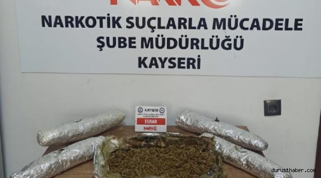 İl Emniyet Müdürlüğü Narkotik Şube Müdürlüğü ekipleri, uyuşturucu ticareti yapan kişilerin yakalanmasına yönelik çalışma başlattı. Bu kapsamda Kayseri-Malatya karayolunda yapılan yol uygulamasında içinde 3 kişinin bulunduu otomobil durduruldu. Araçta yapılan aramada bagaj kısmına gizlenmiş 1 kilo 800 gram esrar ele geçirildi. Araçta bulunan 3 şüpheli, gözaltına alındı.,