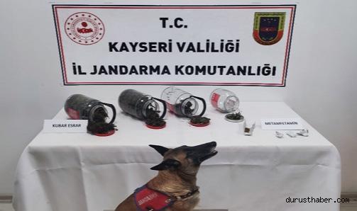 Kayseri İl Jandarma Komutanlığı tarafından uyuşturucu madde imalatı ve ticareti yaptığı tespit edilen A.K.X. isimli şahsın Kocasinan ilçesine bağlı Himmetdede Mahallesi'nde bulunan evine uyuşturucu maddeye yönelik operasyon gerçekleştirildi.Kayseri Cumhuriyet Savcılığı'ndan alınan arama kararı doğrultusunda söz konusu şahsın adresinde İsth./KOM Şb.Md.lüğü, Uyuşturucu Madde Arama Köpek Unsuru ve Himmetdede J.Krk.K. tarafından yapılan aramada, 700 gram kubar esrar ve 2 gram metamfetamin uyuşturucu maddesi ele geçirildi.Şüpheli şahıs yakalanarak adli işlemlere başlandı.