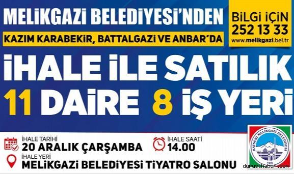 Melikgazi Belediyesi, Kazım Karabekir, Anbar ve Battalgazi Mahallesi’nde mülkiyeti kendisine ait olan 11 adet daire ve 8 adet işyerinin 20 Aralık 2023 Çarşamba günü saat 14.00’te ihale ile satışı gerçekleştirecek.