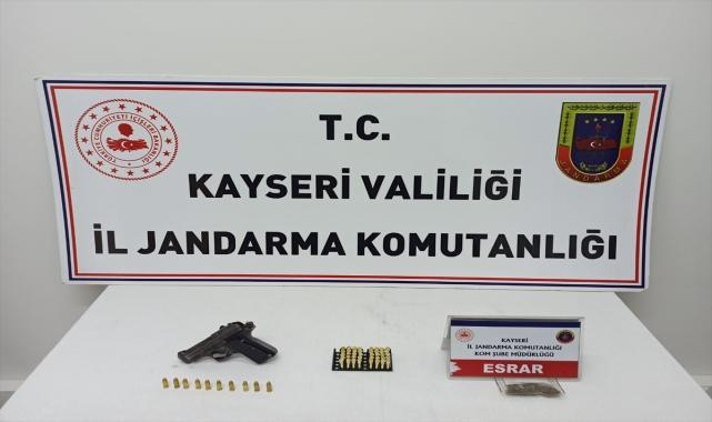 Kayseri'nin Yahyalı ilçesinde jandarma ekiplerince gerçekleştirilen denetimde, bir gazinoda ruhsatsız tabanca ile esrar ele geçirildi. Valilikten yapılan yazılı açıklamaya göre, Ağcaşar Mahallesi'nde yılbaşı tedbirleri kapsamında İlçe Jandarma Komutanlığı ve KOM Şube Müdürlüğü ekiplerince denetim gerçekleştirildi.Ekipler, gazino ve eklentilerinde yaptığı aramada, ruhsatsız tabanca, 50 fişek ve 5 gram esrar buldu.Olayla ilgili soruşturma başlatıldı.
