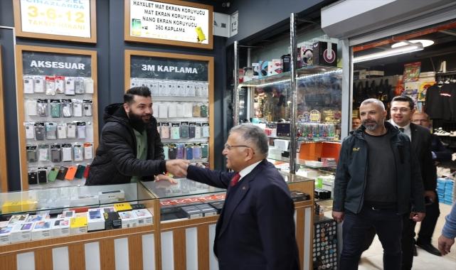 Kayseri Büyükşehir Belediye Başkanı Memduh Büyükkılıç, Yeraltı Çarşısı'ndaki esnafı ziyaret etti. Belediyeden yapılan yazılı açıklamaya göre, Büyükkılıç, iş yerlerini tek tek gezerek esnafa hayırlı işler diledi.Esnaf ve vatandaşlar da Büyükkılıç'a yaptığı hizmetlerden dolayı teşekkür etti.- OSB'ye çıkan alternatif yollarda çalışmalar sürüyorBüyükşehir Belediye Başkanı Büyükkılıç, Organize Sanayi Bölgesi'ne ulaşımda rahatlama sağlayacak Şehit Büyükelçi İsmail Erez Bulvarı'nda sona gelinen çalışmaları yerinde inceledi.Şehrin doğu batı istikametinde Keykubat Kavşağı ile Organize Sanayi birinci giriş 14. Cadde arasında toplam 3 bin 650 metre uzunluğundaki bulvarın organize sanayi tarafındaki 1500 metrelik kesiminde sona gelindiğini belirten Büyükkılıç, yolun sürücülere hayırlı olmasını diledi.- Başkan Yalçın Genç Ofis'te gençlerle buluştuTalas Belediye Başkanı Mustafa Yalçın, şehirdeki üniversitelerde faaliyet gösteren öğrenci kulüpleri temsilcileriyle bir araya gelerek kariyer, hedef ve sosyal sorumluluk projeleri hakkında görüş alışverişinde bulundu.Erciyes Üniversitesi kampüsü içindeki Gençlik ve Spor Bakanlığına bağlı Genç Ofis'te düzenlenen programda Başkan Yalçın, gençlerle sohbet etti.Öğrencileri kulüplerde aldıkları görevden dolayı tebrik eden Yalçın, belediye olarak gençlere yönelik yaptıkları hizmetleri anlattı.