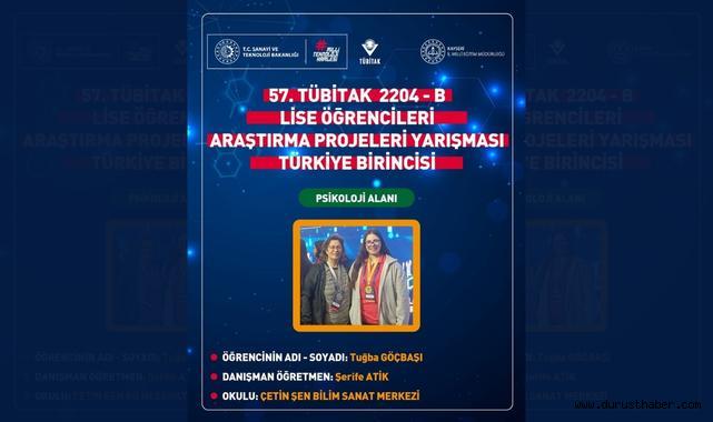 TÜBİTAK tarafından bilimsel düşünceyi teşvik etmek amacıyla organize edilen 57. 2204-B Lise Öğrencileri Araştırma Projeleri Yarışması, bu yıl da Türkiye’nin dört bir yanından gelen yenilikçi fikirlere ev sahipliği yaptı. Kayseri’den yarışmaya katılan ve psikoloji alanındaki araştırmasıyla dikkat çeken Tuğba Göçbaşı, jüriden tam not alarak kategorisinde Türkiye birinciliği derecesini elde etti. Araştırma ve üretim odaklı projelerin ön plana çıktığı yarışmada gelen bu derece, Kayseri’nin bilimsel potansiyelini bir kez daha kanıtladı.