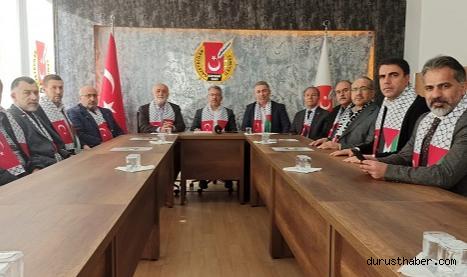 Kayseri Gazeteciler Cemiyeti'ni ziyaret ederek basın mensuplarına açıklamalarda bulunan Kayseri Filistin'e Destek Platformu üyeleri, Kayserili vatandaşları, Filistin'e destek yürüyüşüne davet etti.