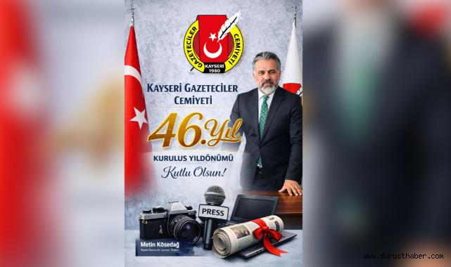 KGC Başkanı Metin Kösedağ, 46. kuruluş yıl dönümü dolayısıyla yaptığı yazılı açıklamada, cemiyetin kuruluşundan bugüne kadar emeği geçen tüm isimlere teşekkür ederek, birlik ve dayanışma vurgusu yaptı. Başkan Kösedağ açıklamasında, Kayseri Gazeteciler Cemiyeti’nin 4 Ocak 1980 tarihinde atılan sağlam temeller üzerine inşa edildiğini belirterek şu ifadelere yer verdi: “Cemiyetimizin 04 Ocak 1980 yılında atılan temelleri, bugün Kayseri basınının en köklü ve saygın meslek kuruluşlarından biri olmamızı sağlamıştır. Bu anlamlı yıl dönümünde, Cemiyetimizin kurucuları olan Erdal Yeğenağa, Mahmut Sabah, Hüsamettin Urfalıer, Mehmet Kiracıoğlu, Mustafa Şapçı, Mehmet Kocakahyaoğlu, Şemsettin Çetinsöz, Oktay Ensari ve Mehmet Aydoğan’ı saygı ve şükranla anıyorum.”“BAŞKANLARIMIZIN KAYSERİ BASININA KATTIĞI DEĞERLER, BİZLERE IŞIK TUTMAKTADIR” Hayatını kaybeden meslek büyüklerini de rahmetle yad eden Kösedağ, açıklamasını şöyle sürdürdü: “Başta rahmet-i rahmana kavuşan Kurucu Başkanımız Mahmut Sabah olmak üzere; Erdal Yeğenağa, Hüsamettin Urfalıer, Şemsettin Çetinsöz ve Ümit Oktay Ensari başkanlarımız ile ebediyete irtihal eden tüm meslektaşlarımıza Allah’tan rahmet diliyorum. Onların mesleğe ve Kayseri basınına kattıığı değerler, bugün de bizlere ışık tutmaktadır.”“HER BİRİ CEMİYETİMİZİ İLERİYE TAŞIMAK İÇİN ÖZVERİYLE ÇALIŞMIŞTIR”