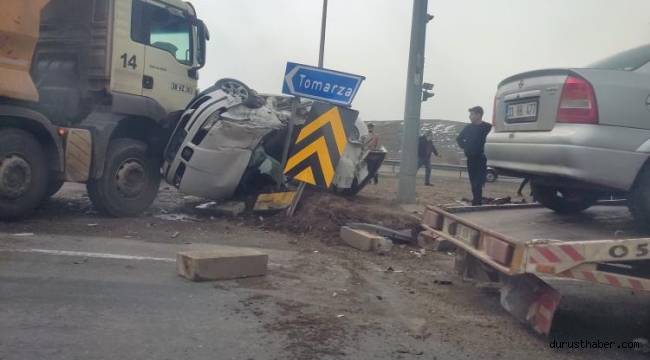 Kaza, Kayseri-Malatya karayolunun Tomarza yol ayrımında meydana geldi. Bir kamyon ve bir otomobilin karıştığı kazada otomobil ağır hasar aldı.