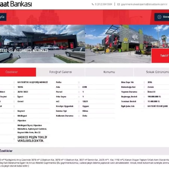 Kayseri'de, 2016 yılında açılan ve Başyazıcı ailesine ait olan Mix AVM, Ziraat Bankası tarafından, 190 milyon liraya satılıyor.