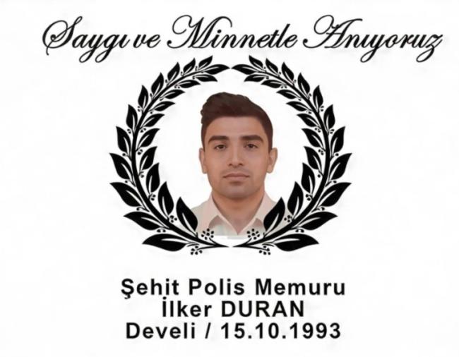 Şehit Polis Memuru İlker Duran ise 13 Mart 2024 tarihinde Şırnak Emniyet Müdürlüğü görevindeyken geçirdiği trafik kazası sonucunda yaralanmış, kaldırıldığı hastanede yapılan tüm müdahalelere rağmen 14 Mart 2024’te şehit düşmüştür. Duran, Kayseri’nin Develi ilçesinde toprağa verilmiştir.