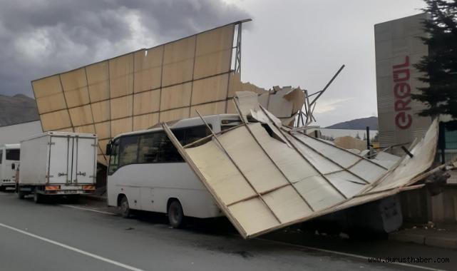 OSB 29’uncu Cadde’deki fabrikanın otopark bölümünde bulunan tente, rüzgarın şiddetiyle koparak savruldu. Olay sırasında park halinde bulunan iki araçta hafif çaplı hasar oluşurken, fabrikanın duvarının bir kısmının da kısmen çöktüğü öğrenildi.