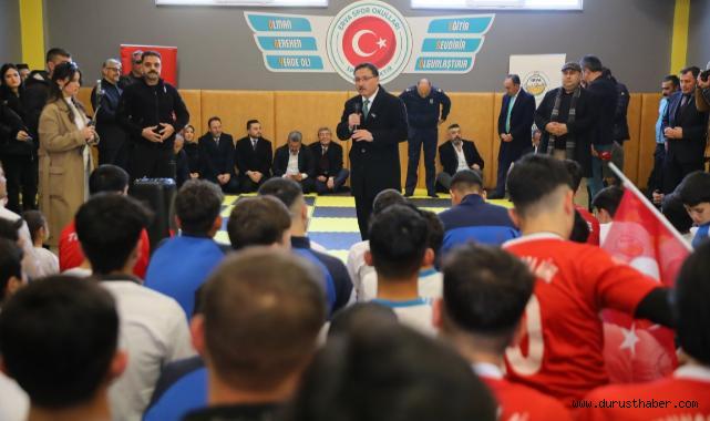 Vali Çiçek, spor okulları aracılığıyla her mahallede gençlere ulaşmayı hedeflediklerini belirterek, şunları kaydetti:“Emniyetimiz ve jandarmamız, gençlerimizi zehirlemek isteyenlerin karşısında demir yumruğunu indiriyor. Bizler de spor okullarıyla onlara imkân sunuyoruz. Belediyelerimizin destekleriyle Kayseri’yi bir spor şehri haline getireceğiz.”Gençlere seslenerek kütüphaneleri ve spor salonlarını doldurmalarını tavsiye eden Çiçek, “Bu millet ve mazlum coğrafyalar sizden ümit bekliyor. Ne olursa olsun pes etmeyin” dedi.