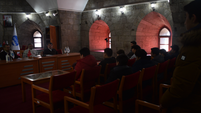 Kayseri Turizm İşletmecileri Derneği Yönetim Kurulu Başkanı Serdar Sarıçam, Kayseri Anadolu İmam Hatip Lisesi "Kayseri Şehir Kulübü" öğrencilerine kültürel mekanlar ve kent tarihi hakkında bilgi verdi.