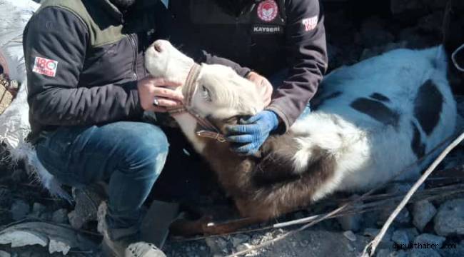 Kayseri İl Tarım ve Orman Müdürlüğü veteriner hekimleri, Kahramanmaraş’ta meydana gelen deprem sonrası göçük altında kalan ineği enkazdan çıkararak tedavisini gerçekleştirdi.
