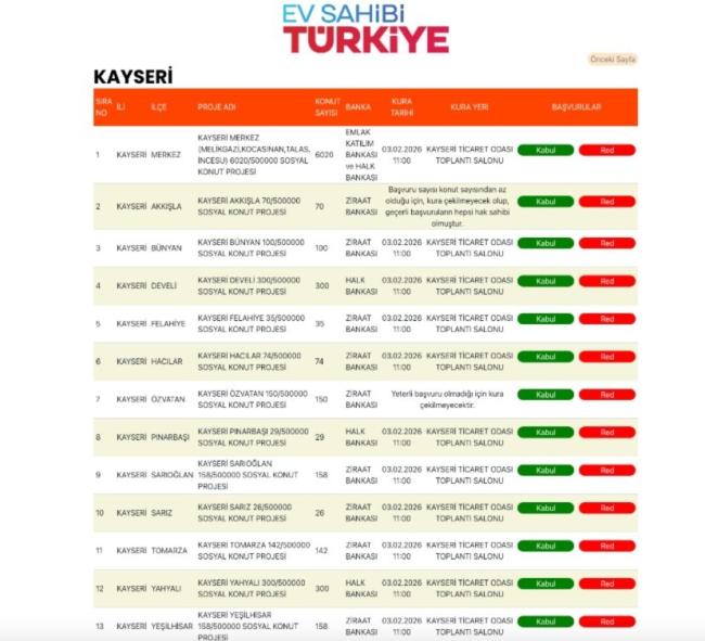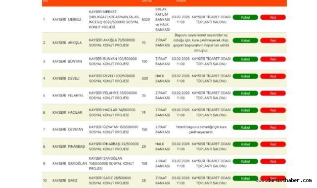 Kura çekimi, Kayseri Ticaret Odası Toplantı Salonu’nda saat 11:00’de başlayacak. Sosyal konut projesi, 500 bin konutluk toplam proje kapsamında Kayseri’ye özel olarak 7 bin 562 konutu kapsıyor.