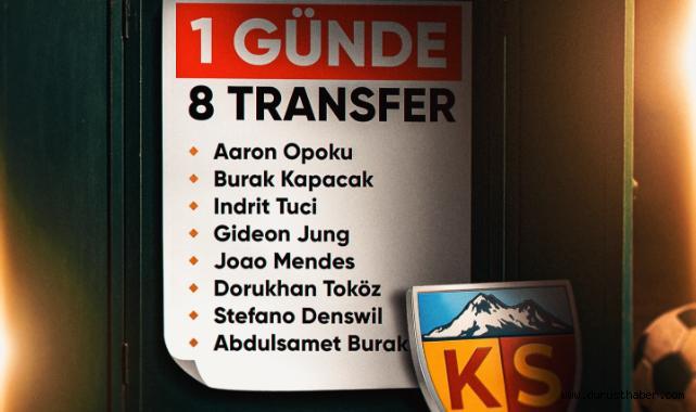 Kayserispor, transfer tahtasını açmasının ardından adeta tarihi bir gün yaşadı. Sarı-kırmızılılar, yalnızca 1 gün içinde tam 8 futbolcuyu kadrosuna kattı.