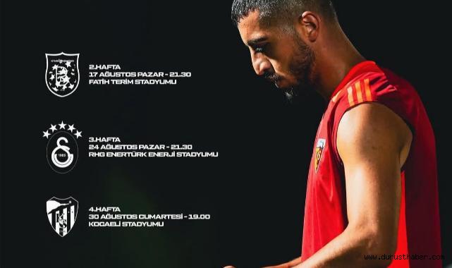 TFF tarafından 3’üncü ve 4’üncü hafta maç programı açıklandı. İlk hafta Beşiktaş ile karşılaşacağı müsabaka ertelenen Kayserispor, ikinci hafta başakşehir ile mücadele edecek. 17 Ağustos Pazar günü Başakşehir FK ile karşılaşacak olan Kayserispor, 24 Ağustos Pazar günü Galatasaray’ı konuk edecek. Kayserispor, 30 Ağustos Cumartesi günü deplasmanda Kocaelispor’a konuk olacak.