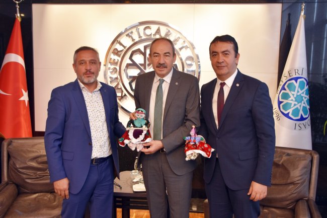 Günün anısına KAYTİD Başkanı Serdar Sarıçam, KTO Başkanı Ömer Gülsoy ve Meclis Başkanı Arslan'a Yeşilhisar İlçesi El İşi Soğanlı Bebeklerinden hediye etti.