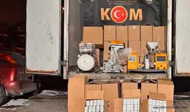 Gerçekleştirilen operasyonda 35 yaşındaki E.K. yakalanırken, adresinde yapılan aramalarda 523 bin 600 adet makaron, 270 kilogram kaçak tütün, 2 adet elektrikli sigara dolum makinası, 24 bin boş sigara paketi ve 270 paket kaçak sigara ele geçirildi.