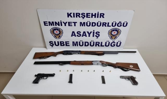 Kırşehir'de kendini silahla yaraladığı iddiasıyla hastaneye başvuran şüphelinin evinde 2 tabanca ile 2 tüfek ele geçirildi. İl Emniyet Müdürlüğünden yapılan açıklamaya göre, Kırşehir Eğitim ve Araştırma Hastanesi'ne gelen A.Ç, silahla oynarken kazara kendini vurarak yaraladığını söyledi.Tedavi edilen A.Ç'nin, kendini yaraladığı silahla ilgili çelişkili bilgiler vermesi üzerine Asayiş Şube Müdürlüğü ekipleri, söz konusu kişinin evinde yaptıkları aramada ruhsatsız tabanca, şarjör, 8 fişek, ruhsatsız av tüfeği, başkası adına ruhsatlı av tüfeği ile kurusıkı tabanca buldu.Şüpheli hakkında adli soruşturma başlatıldı.