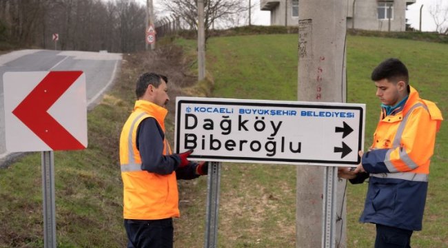 Kocaeli Büyükşehir Belediyesi Ulaşım Dairesi Başkanlığı kırsal mahallelerin işaret ve yönlendirme levhalarını yeniliyor.