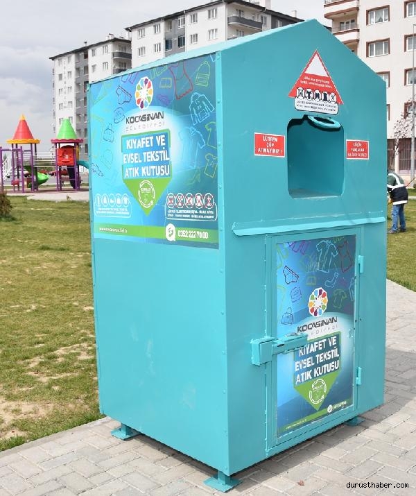 KOCASİNAN Belediyesi'nin 2018 yılında ilçenin 182 farklı noktasına yerleştirdiği 'Kıyafet ve Evsel Tekstil Atık Kutusu' çalışması ile 2021 yılında topladığı 185 ton kıyafet atığı geri dönüşüme kazandırıldı.
