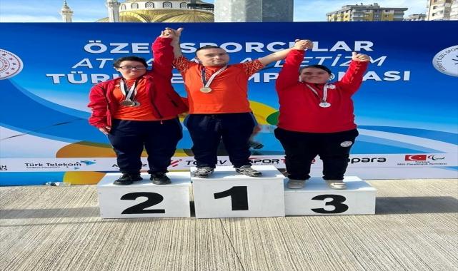 Kocasinan Belediyesi Spor Kulübü Down Atletizm Takımı sporcusu Betül Solmaz, Türkiye Özel Sporcular Spor Federasyonunun organize ettiği Özel Sporcular Atmalar Atletizm Türkiye Şampiyonası'nda gülle atmada Türkiye üçüncüsü oldu. Belediyeden yapılan açıklamaya göre, Belediye Başkanı Ahmet Çolakbayrakdar, şampiyonada bronz madalya kazanan Solmaz'ı tebrik etti.Özel çocukların başaramayacağı hiçbir şeyin olmadığını belirten Çolakbayrakdar, sporcularının örnek teşkil ettiğini aktardı.Özel çocukların sahip oldukları yeteneklerini ortaya çıkarmaları konusunda önderlik ettiklerini dile getiren Çolakbayrakdar, "Özel çocuklarımız büyük bir başarı hikayesi yazıyor. Onların hayatını kolaylaştırmak için desteklerimizi artırarak devam ettireceğiz. Kocasinan Belediyesi olarak elimizden geldiğince sporun farklı branşlarına destekler veriyoruz." ifadesini kullandı.Kocasinan Spor Kulübü antrenörü Uğur Arı ise desteklerinden dolayı Çolakbayrakdar'a teşekkür etti.