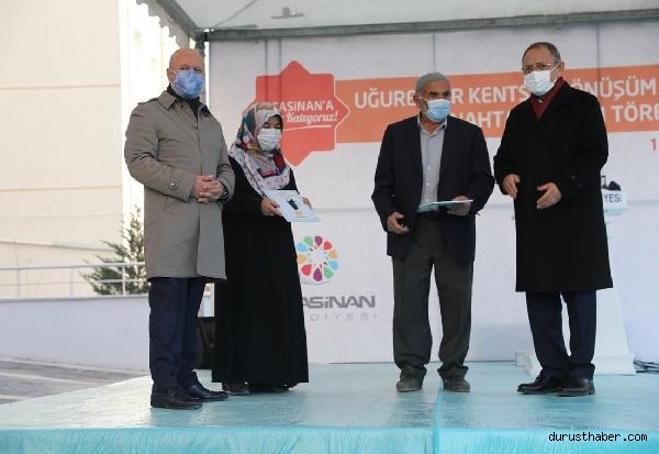 KOCASİNAN Belediyesi, kentsel dönüşüm projesi kapsamında yapımı tamamlanan evlerin anahtarlarını düzenlenen törenle sahiplerine teslim etti.