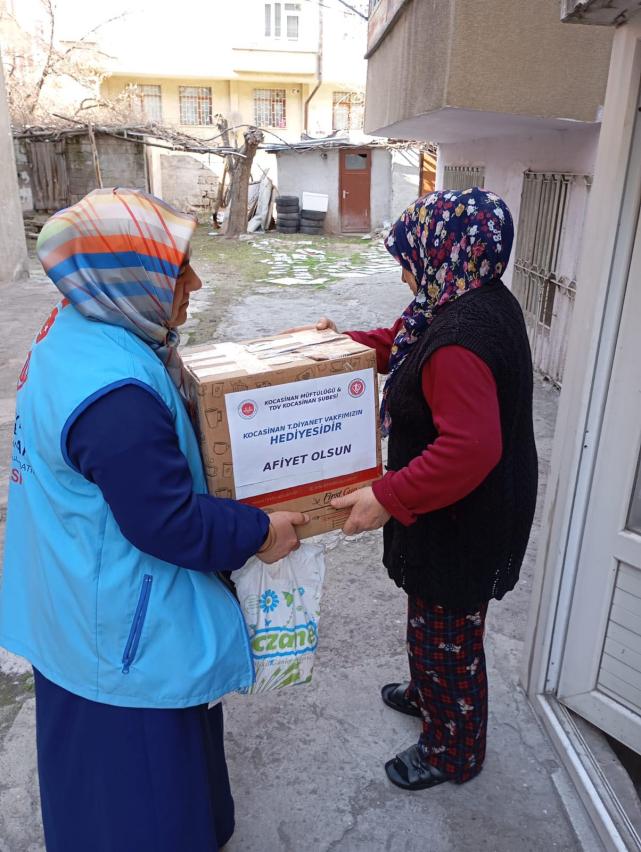 Kocasinan Müftülüğü ve Türkiye Diyanet Vakfı Kocasinan Kadın Kolları iş birliğiyle sürdürülen iyilik hareketi, Ramazan ayı boyunca hız kesmeden devam ediyor.İlçe Müftüsü Halil Uzun’un koordinesinde gerçekleştirilen program kapsamında, Kur’an kurslarında yardım kolileri titizlikle hazırlandı. Ardından, maddi durumu iyi olmayan aileler tespit edilerek, Kur’an kursu öğretmenleri tarafından bu koliler evlere teslim ediliyor.Ziyaretler sırasında öğretmenler, hem Ramazan tebriğinde bulunuyor hem de yardım kolilerini ihtiyaç sahiplerine ulaştırıyor. Çalışmalar, iyilik haftası dolayısıyla en üst seviyede sürdürülüyor.