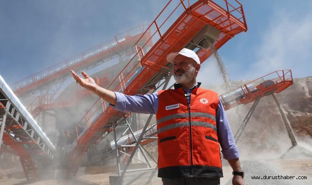 Tesiste dağdan çıkarılan kalker cinsi taşın işlenerek mıcır haline getirildiğini, ardından asfalt plentinde bitümle birleştirilerek yol yapımında kullanılan yüksek kaliteli malzemeye dönüştürüldüğünü ifade eden Çolakbayrakdar, uzun ömürlü ve dayanıklı yollar için bu üretimin büyük değer taşıdığını söyledi.