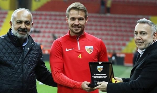 Kayserispor’un Yunan stoperi Dimitrios Kolovetsios, bu mücadeleyle birlikte sarı-kırmızılı formayla 100. maçına çıkarak ‘dalya’ yaptı.