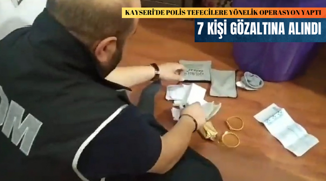 Kayseri İl Emniyet Müdürlüğü Kaçakçılık ve Organize Suçlarla Mücadele Başkanlığı (KOM) ekipleri kentin huzur ve güvenliği için çalışmalarını sürdürüyor. Ekipler bazı esnaflara ödünç para adı altında haftalık ve aylık faizle para vererek zorla senet imzalattıran tefecilerin yakalanmasına yönelik şafak operasyonu yaptı. Yapılan operasyonda birçok senet, verilen paraların tutulduğu not defteri ve ajanda, pompalı tüfek ve uyuşturucu madde ele geçirildi.