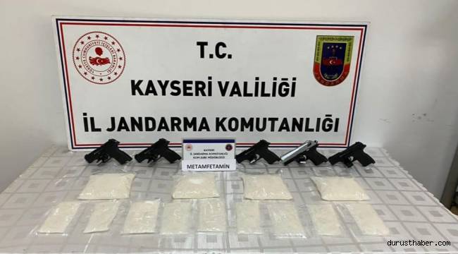 Kayseri’de jandarma ekiplerince A.S isimli şahıs, İstanbul’dan temin edilerek kombi cihazı içerisinde Kayseri’ye getirilen uyuşturucu maddeyi teslim alırken suçüstü yakalandı. Yapılan aramada 3 kilogram metamfetamin uyuşturucu madde ve 5 Adet 9 mm. çapında ruhsatsız tabanca ele geçirildi.