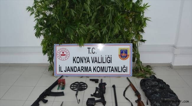 Konya'nın Seydişehir ilçesinde 43 kök Hint keneviri ele geçirildi, 1 kişi gözaltına alındı.