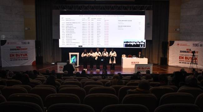 Saygı duruşunda bulunulması ve İstiklal Marşı'nın okunmasının ardından başlanan kura çekiminde, hak sahiplerinin isimleri okunarak dijital ekrana yansıtıldı.Vatandaşlar, hem salonda hem de Mevlana Kültür Merkezi'nin bahçesine kurulan ekranlardan kura çekimini takip etti.