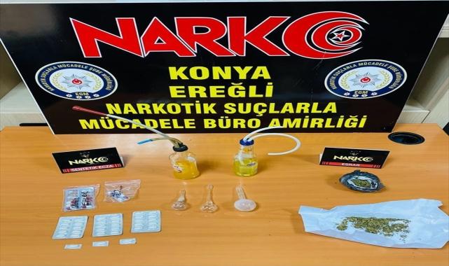 Konya'nın Ereğli ilçesindeki uyuşturucu operasyonunda 11 şüpheli yakalandı. İlçe Narkotik Suçlarla Mücadele Grup Amirliği ekipleri, uyuşturucu kullanan, bulunduran, nakleden, ticaretini yapanlara yönelik çalışma başlattı.Belirlenen adreslere düzenlenen operasyonda 2'si yabancı uyruklu 11 zanlı gözaltına alındı.Şüphelilerin ikametlerinde bir miktar uyuşturucu ele geçirildi.Yabancı uyrukluların İl Göç İdaresi Müdürlüğüne teslim edildiği, 9 şüphelinin emniyete götürüldüğü öğrenildi.